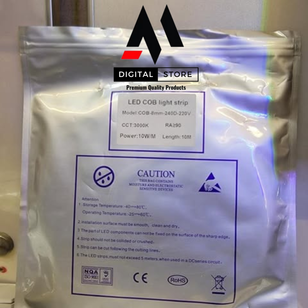 Illuminate your space with our high-quality COB Strip Light, designed for easy use and vibrant lighting. This 10-meter roll provides flexible, bright, and energy-efficient lighting for both indoor and outdoor environments. With its direct plug-in feature compatible with 220V power, you can quickly install it without the need for adapters or additional components.